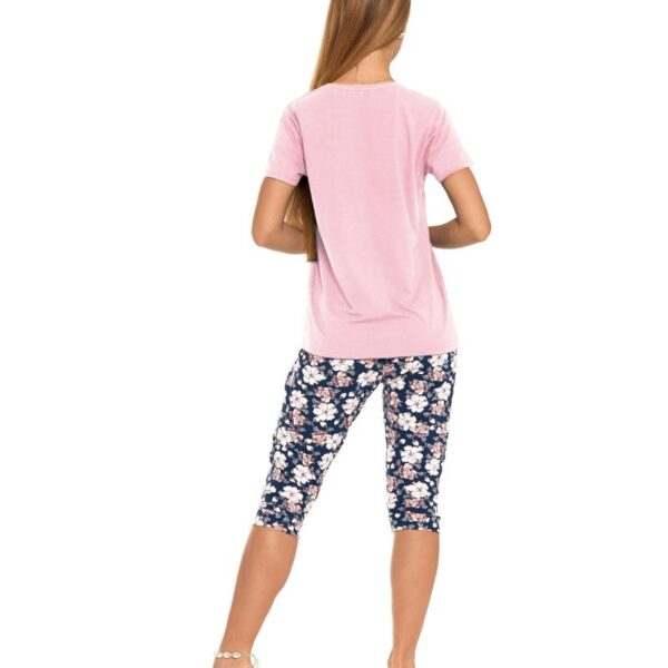 Pijama roz cu maneca scurta si pantalon 3/4