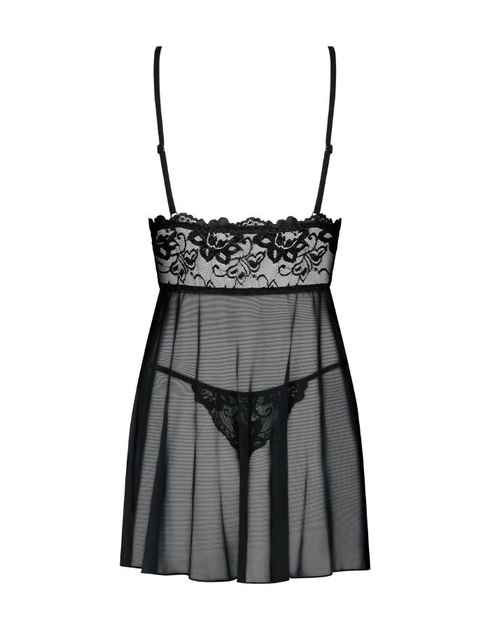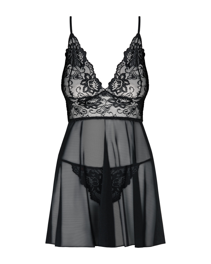 Lejeră, vaporoasă, aparent inocentă… Și totuși îndrăzneață, senzuală și foarte feminină. Așa este babydoll-ul Idillia. Materialul translucid și sexy cade ușor pe șolduri, decolteul din dantelă accentuează frumos sânii, iar bretelele subțiri de la spate expun frumos spatele. Această cămașă este concepută pur și simplu pentru ocazii speciale. Ce fel de ocazii? Depinde în totalitate de tine…