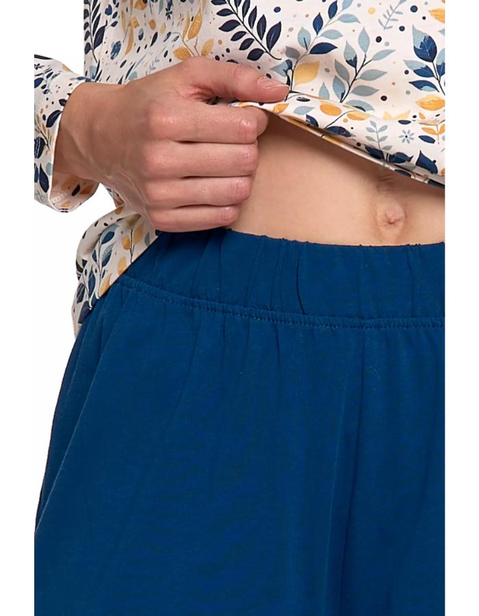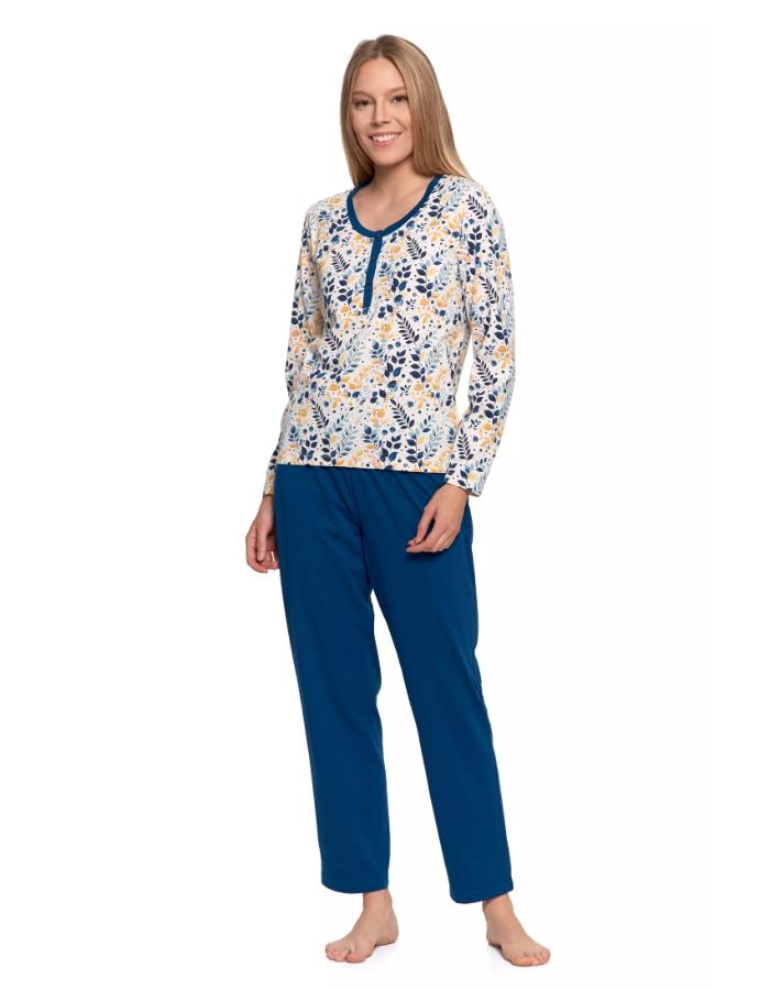 Confort și naturalețe la apogeu – aceste pijamale pentru femei sunt alegerea perfectă pentru un somn odihnitor și seri relaxante acasă. Fabricate din bumbac 100% respirabil, acestea învăluie pielea în moliciune și oferă confort complet pe tot parcursul nopții. Tricoul cu mânecă lungă și decolteu practic, deschis, în V, combină confortul cu funcționalitatea, în timp ce croiala clasică adaugă un farmec atemporal. Setul include pantaloni drepți cu talie elastică pentru libertate de mișcare și o croială confortabilă. Aceste pijamale sunt perfecte atât pentru nopțile mai răcoroase, cât și pentru diminețile liniștite cu o ceașcă de cafea.